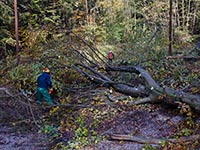 Etwa 50 bis 60 Bäume lagen quer über die Bahn und eben so viele neigten sich gefährlich in oder entlang der Bobbahn.
