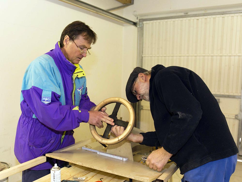 Einbau des Lenkrades mit SCR Vorstand Rolf Lehmann