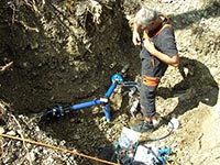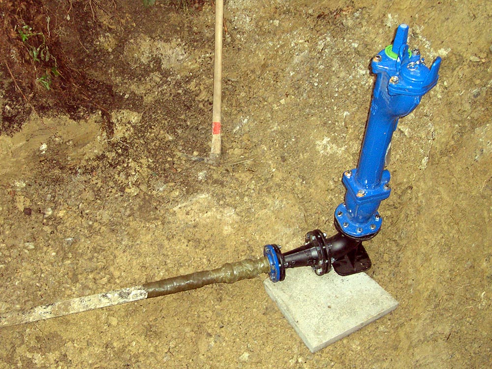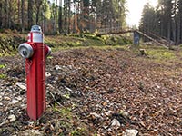 Beim ersten Wiederaufbau der Historischen Bobbahn im Jahre 2013 mussten die freiwilligen Helfer teils in mühevoller Arbeit von der Zisterne oder vom Riessersee aus mehrere huntert Meter Schläuche zum Bewässern der Bahn legen. Dies „schlauchte“ ganz schön. Außerdem hoffte man, die Bahn mit der bestehenden Wasserversorgung vereisen zu können, aber einige Rohrbrüche machten uns einen Strich durch die Rechnung. Die Vereisungsarbeiten dauerten mehrere Wochen wobei an manchen Tagen vom Nachmittag bis Mitternacht gearbeitet wurde. Bei manchen Helfern ging das bis an die Grenzen der körperlichen Belastung. Dies veranlasste uns in diesem Jahr zu einer grundlegenden Überholung der teilweise noch aus den 30er- bzw. 50er-Jahren stammenden Wasserversorgung. Es wurden etliche Meter Leitung neu verlegt und von den insgesamt 14 Hydranten wurden sieben komplett erneuert. Jetzt stehen uns auch zwei Oberflur-Hydranten zur Einspeisung von der Zisterne zur Verfügung. Wir hegen die Hoffnungen, dass uns beim diesjährigen Aufbau der Bobbahn ein erneuter Rohrbruch erspart bleiben möge. |