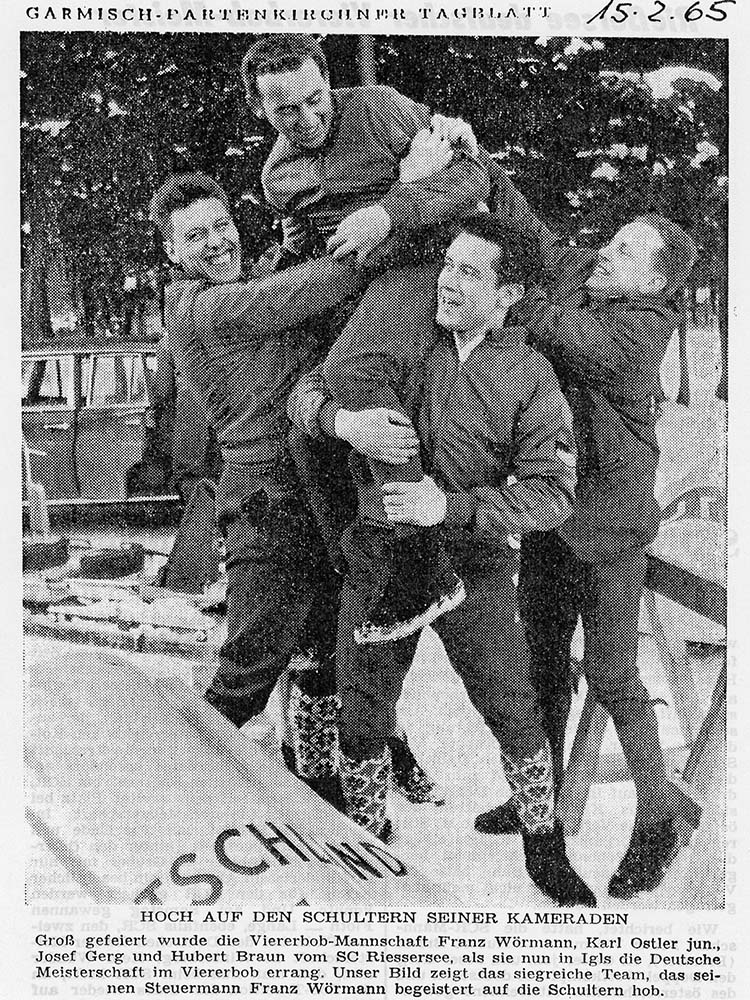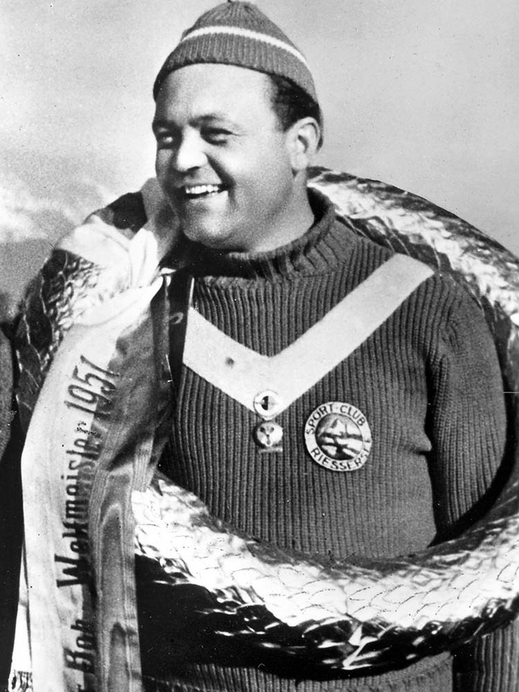 Anderl Ostler - Mit 2 x Gold bei den Olympischen Spielen in Oslo, 2 Weltmeistertiteln in Alpe d`Huez und dem Gewinn von 7 Deutschen Meistertiteln ist er der erfolgreichste Bob-Pilot des SC Riessersee.
