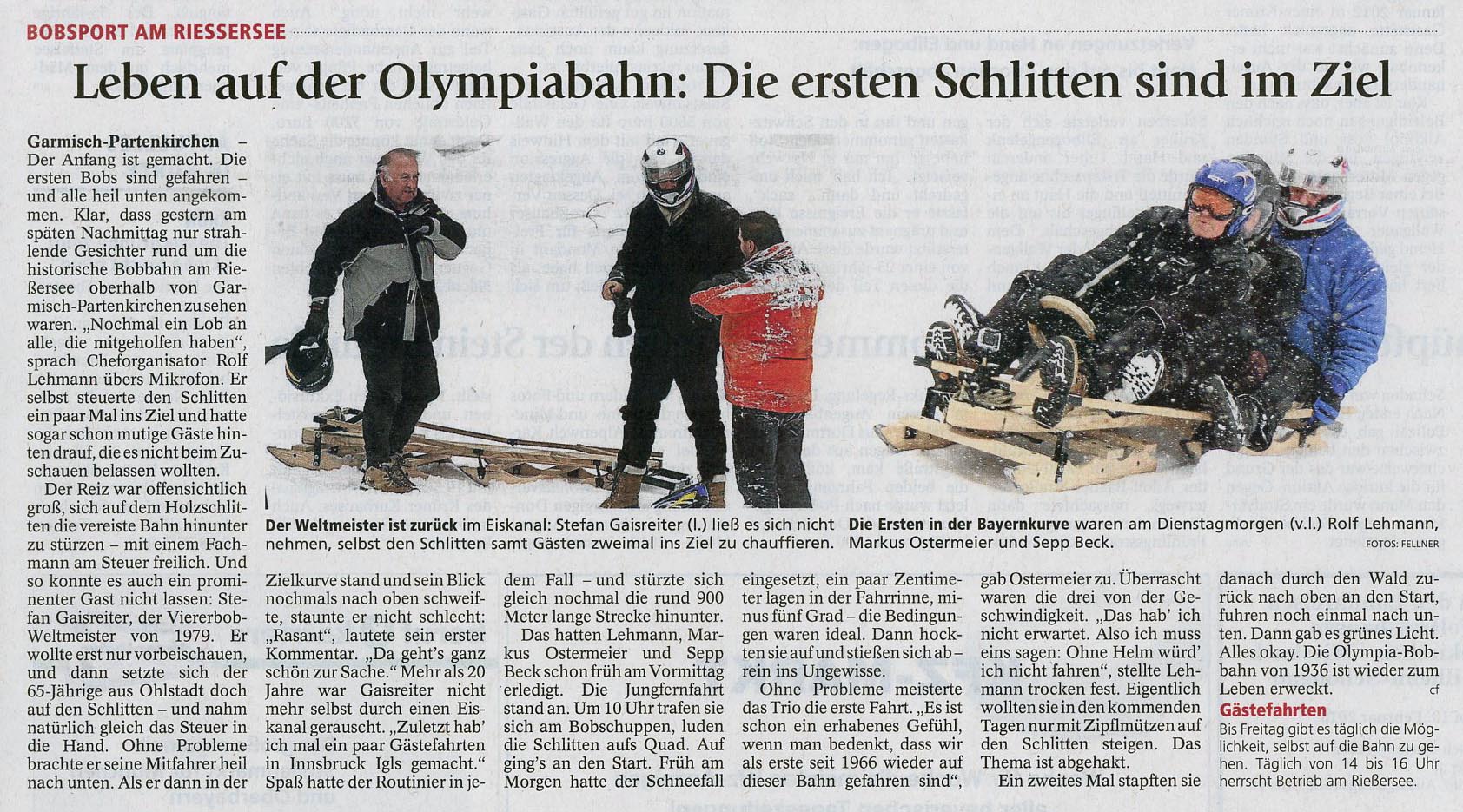 Sollten Sie Fotos, Filme oder andere Medien zu unserem Historischen Bobrennen sowie der Olympia-Bobbahn am Riessersee haben würden wir uns freuen, wenn Sie uns diese zur Verfügung stellen. E-Mail :