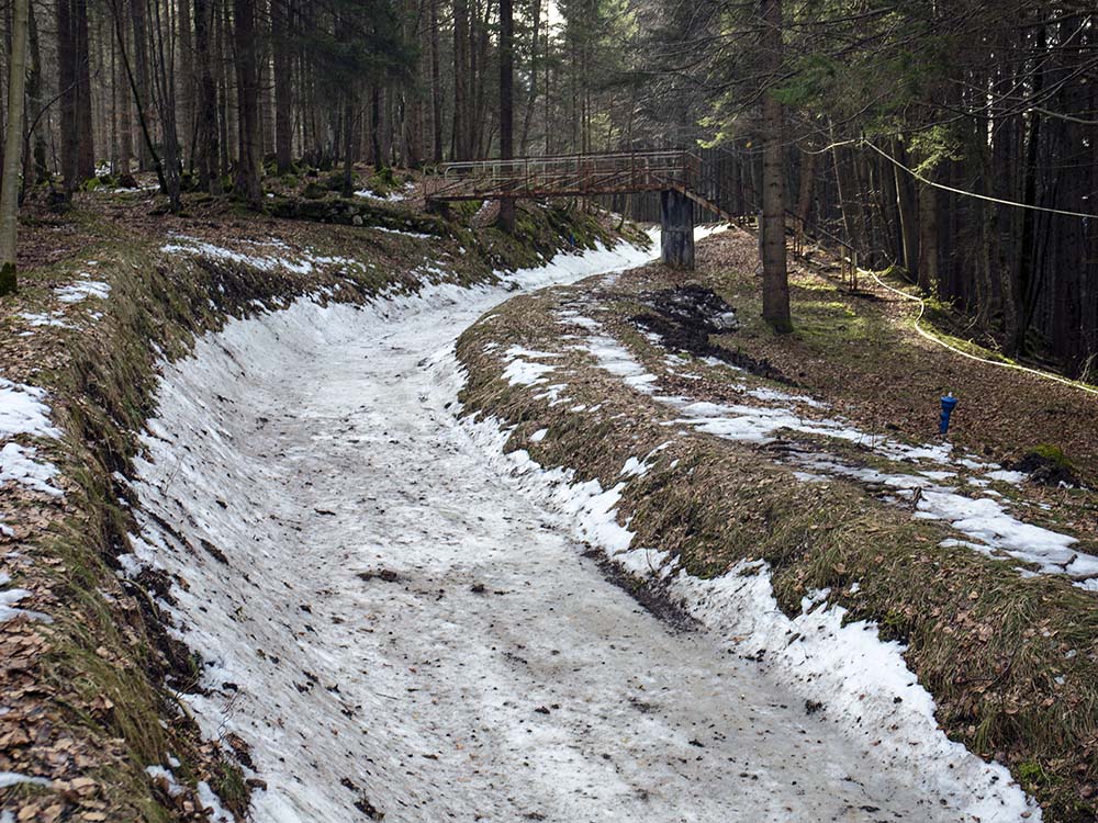 Am Dienstag, den 29. Januar 2013 war die Bobbahn komplett fertig und bereit für die erste Fahrt. Noch am selben Abend schlug das Wetter um. Bei Temperaturen von bis zu 15°C und anhaltenden Regenfällen schmolz die Bahn innerhalb von fünf Tagen fast komplett dahin. Vier Wochen Arbeit von zahlreichen freiwilligen Helfern waren fast für die Katz. Nur noch Reste der Eiswände und der Sohle der Bahn blieben übrig.
