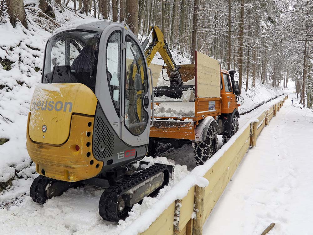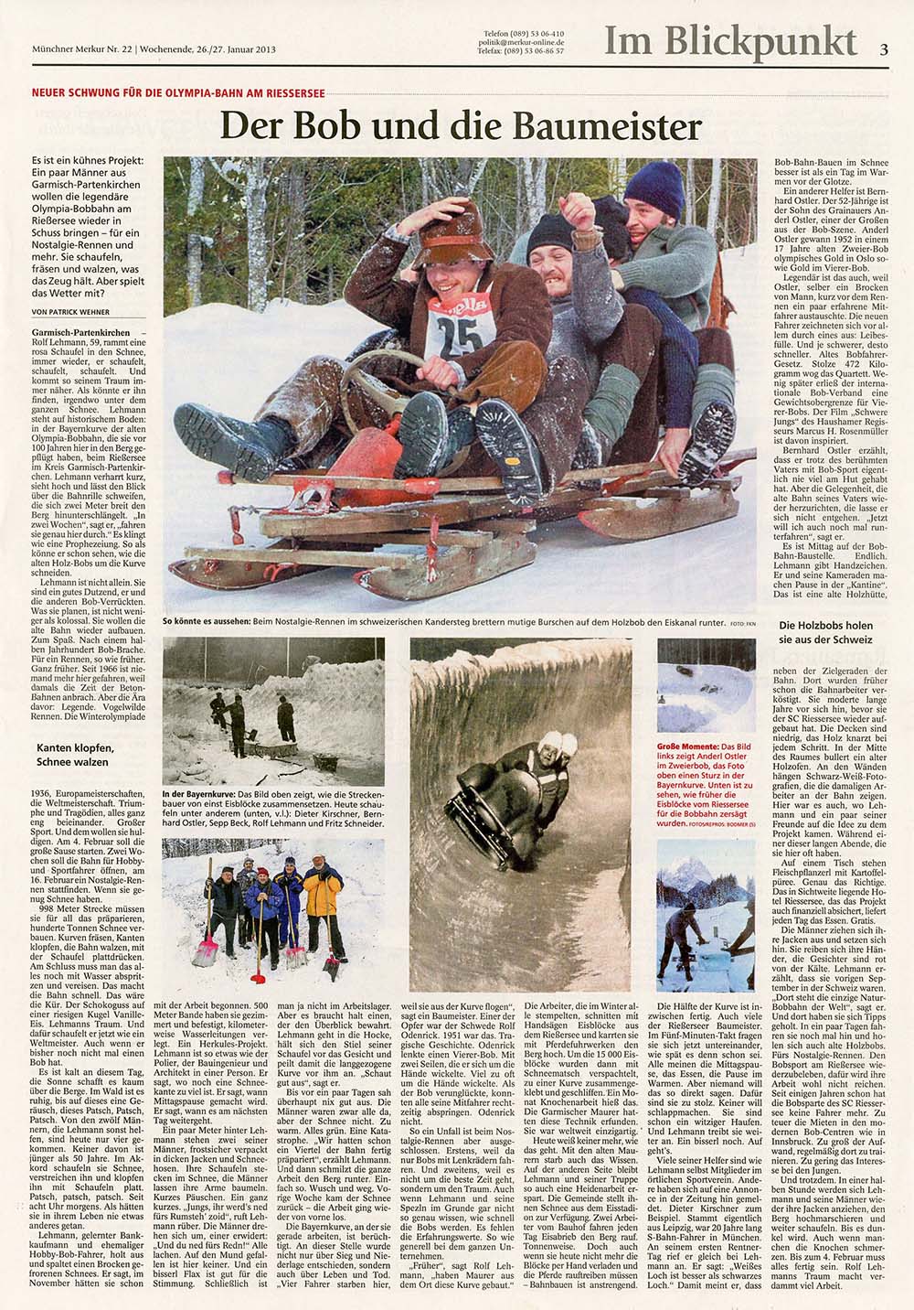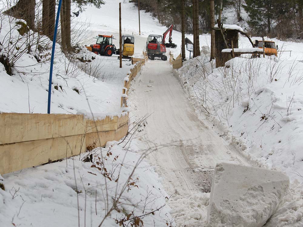 Der Gedanke aufzugeben lag nahe doch die enthusiastischen Garmischer Bobfreunde warfen die Flinte nicht ins Korn und bauten die Bahn unter unermüdlichem Arbeitsaufwand - oft bis in die Nacht hinein - wieder auf. Der Zeitplan musste um einige Tage verschoben werden doch am 11. Februar 2013 stand die Bahn fahrbereit da und am 12. Februar 2013wurde sie aus ihrem 47-jährigen Dornröschenschlaf wachgeküsst.